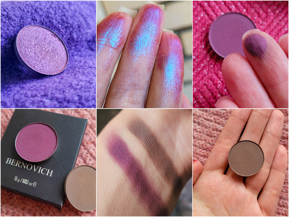 Всем привет! В этой статье я хочу познакомить вас с тенями белорусского бренда Bernovich, которые по своему качеству и характеристикам не уступают дорогим и люксовым теням. Продукт представлен в формате монотеней, то есть одиночный рефил, упакованный в пластиковый кейс и картонную коробочку. Имейте в виду, что для удобного хранения этим теням необходима магнитная палетка. Объем достаточно большой -1,5г. Для себя я выбрала два матовых оттенка 112 и 132, и один мультихром из линейки Creative 161. 112 - это тот самый нейтральный коричневый, которым можно и складку выделить, и уголок затемнить. Финиш матовый. По текстуре немного суховат, может пылить при наборе на жёсткую кисть, однако в осыпаниях замечен не был. Пигментация замечательная, в один слой тени наносятся ровно и без проплешин. При желании, их можно наслоить, чтобы добиться цвета, как в монетке. Тушуются практически сами, без грязи и пятен. 132 - темно-фиалковый матовый, сделает зелёные глаза ещё более зелёными. По характеристи