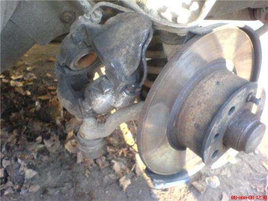 Для замены ступицы, надо сначала определиться что вы будете менять. Саму ступицу или же только подшипники ступицы. Мы рассмотрим 2 варианта. 1. Вариант замена ступицы целиком. Для этого ставим упоры под колесо, снимаем колесо, где будет замена ступицы. Ключом или головкой на 13 снимаем тормозной суппорт. Подвешиваем суппорт на проволоку или верёвку за рычаг. Чтобы тормозной шланг не деформировался и не порвался. Берём ключ или головку на 27, откручиваем стопорную гайку. Левая гайка откручивается против часовой стрелки. На правом колесе – по часовой стрелке.
