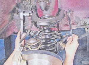 Всем привет, сегодня произведём замену передних рычагов. Какая именно замена, зависит от вас. Купите ли вы сразу рычаг в сборе или же всё по отдельности. Если в сборе, то рассказывать вам тут нечего поменяли деталь новую на старую. Как говориться не глядя) А я расскажу как произвести замену рычага не в сборе. И так поехали. Ставим машину где вам удобно на яму или подъёмник. Снимаем колесо, где будете производить замену рычагов и сайлентблоков. Снимаем болт крепления кронштейна бампера, откручиваем верхнюю шаровую опору. Откручиваем болт крепления рычага, ключами на 17. Снимаем болт и вынимаем верхний рычаг. Для снятия сайлентблоков закрепляем верхний рычаг в тисках. С помощью специального съемника выпрессовываем из верхнего рычага сайлентблоки. Этим же съёмником, запрессовываем новые сайлентблоки. Установку производим в обратном порядке. Перейдём к нижнему рычагу. Для начала нужно снять пружину. Снимаем амортизатор, как это сделать я рассказывал тут. После того как сняли амортизатор.