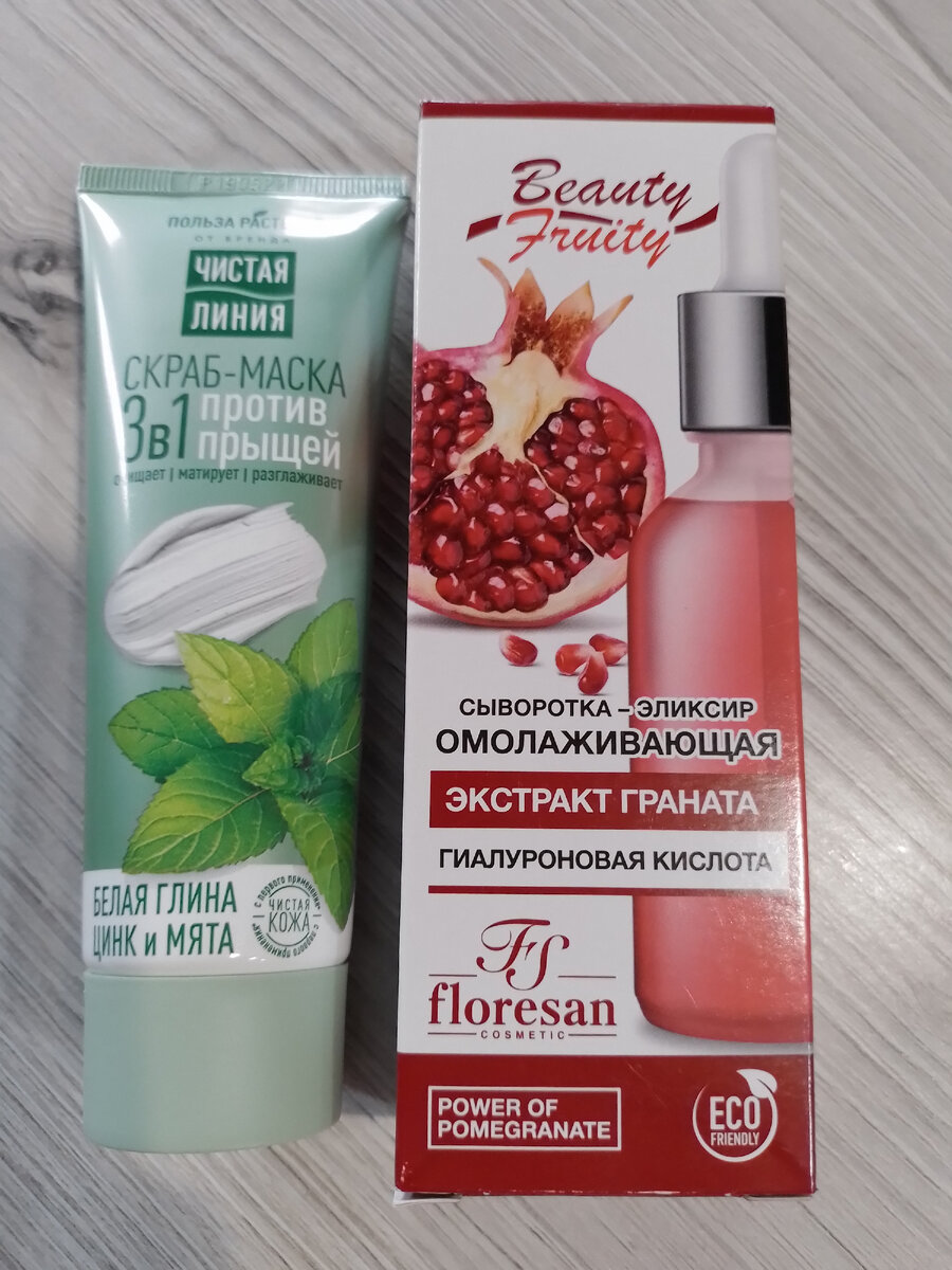 Немножко поснимала там новинки (скоро выложу фотоотчетик) и, конечно же, не вышла оттуда с пустыми руками. Заранее полистала отзывы на различные товары, что сейчас продают в "Фикс прайсах". Присмотрела сыворотку и гель для стирки. Ну этим не обошлось) Сыворотка омолаживающая с экстрактом граната имеет только положительные отзывы. Есть 3 вида, но именно эта людям нравится. Мне пришлось долго добывать ее с глубины полки, т.к. в первых рядах стояли другие виды. Цена 99 рублей. Я не возлагаю на нее каких-то особенных надежд, в чудеса не верю. Хочу получить хотя бы хорошее увлажнение для подуставшей от летнего солнца кожи. Скраб-ма