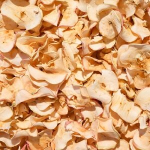 Кожура у готовых сухояблок заметно темнеет. Мякоть сохраняет текстуру, на ощупь она не влажная и не липкая, не «расползается», если нажать на нее пальцем.