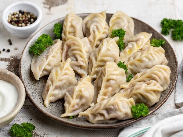 Курзе с мясом — одно из самых популярных блюд в Дагестане. Их отличает от других пельменей уникальная форма и особый способ приготовления. Курзе выполнен в виде капли, с закругленным концом с одной стороны и острым концом с другой. Стежок с характерным узором закрывает пельмень сверху. Считается, что этот шов и дал название блюду. «Курзе» происходит от слова «гюрза», названия змеи. Узор на тесте напоминает движение змеи. У дагестанских свекровей существует традиция проверять будущую невестку умением лепить курзе. Если девушка умеет ловко и аккуратно лепить курзе, то считается, что она будет хорошей хозяйкой. Форма курзе — не единственное, что отличает его от других пельменей. В фарш из говядины или баранины также следует добавлять молочную сыворотку или помидоры. Поскольку сейчас сезон спелых сладких помидоров, я решила сделать курзе со вторым видом начинки. Часть лука обжаривают на сливочном масле и тушат со свежими помидорами и специями. Сырой лук, свежая зелень и чеснок добавляются