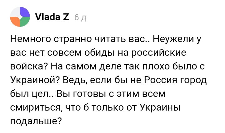 Плохо ли нам жилось? Если вы задаёте мариупольцам такой вопрос, то скорее всего вам было совершенно все равно, что происходило у вас под носом все эти годы, начиная с 2014. Иначе вы бы понимали, почему все это началось, почему образовались ДНР и ЛНР. Вы бы знали, что ополчение Донбасса защищало не только свою землю, а весь русский мир, и что Россия была просто обязана помочь тем, кто борется в одиночку против наших исконных врагов в лице западного мира.