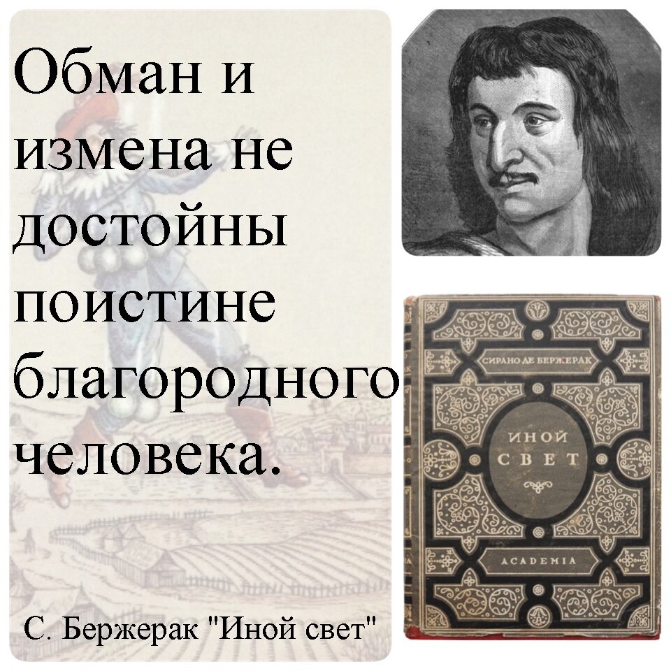 "Иной свет", в свою очередь, не был написан на пустом месте: в качестве источников вдохновения можно назвать Лукиана, Рабле, утопистов Томаса Мора и Кампанеллу. Существовала и книга "Человек на Луне" Фрэнсиса Годвина, чей главный герой, испанец, появится на страницах произведения Бержерака. Тогда еще не было твердого понятия об авторском праве; писатели свободно обращались с творчеством друг друга. Кстати говоря, знаменитый Мольер не погнушался позаимствовать из пьесы Бержерака "Проученный педант" (1647) две сцены для своих "Проделок Скапена" (1670).