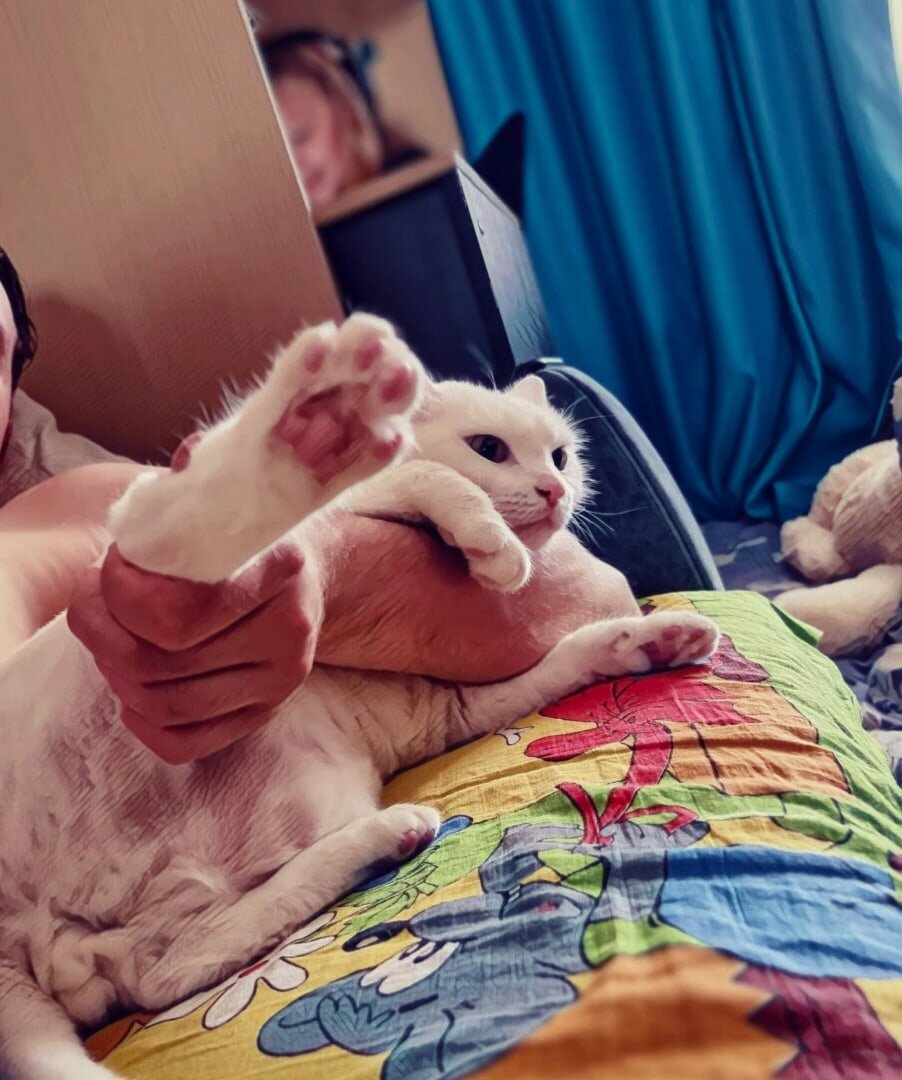 Я Белому постригла когти; Он не хотел, ворчал, пинался, Мы спорили с ним долго очень, В итоге он, всё же, поддался. Потом обиделся и плакал, Ушёл грустить под батарею - У старой плюшевой собаки Просил поддержки в утешенье. Через часок проголодался (Я ела макароны с лечо), На кухню тихо он пробрался И прыгнул нагло мне на плечи. Глядел обиженно в тарелку, Не клянчил - молча намекал. Я положила ему рыбку - Мигом всё съел и усвистал. Такой пушистый обижулька, Красавчик - что ни говори, Белый комочек, крохотулька... Его можно только любить!