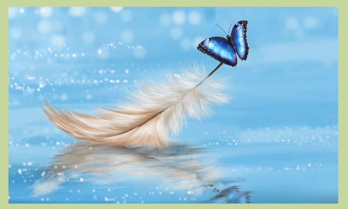 Не думаю, что Люда обидится, но посмотрите СКОЛЬКО в этой простоте изображения удивительного желания поделиться чем-то легким и пушистым как пёрышко: бабочка несет пёрышко Счастья!