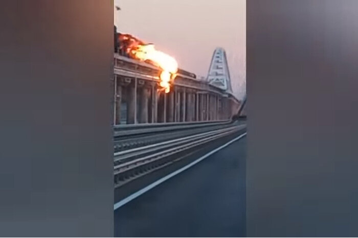 ЧП на Крымском мосту: загорелась цистерна с топливом, движение по мосту остановлено