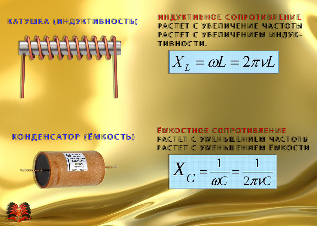 Еще немаловажно что как катушка так и конденсатор сдвигают косинус фи на четверть периода , это явление еще называют сдвиг фаз, то есть сдвигается ток относительно напряжения в периоде , от конденсатора вперёд на 90 градусов , от катушки назад на 90 градусов .Из всего вышесказанного выходит , что оба компонента являются сопротивлениями , хоть не совсем обычными но сопротивлениями.