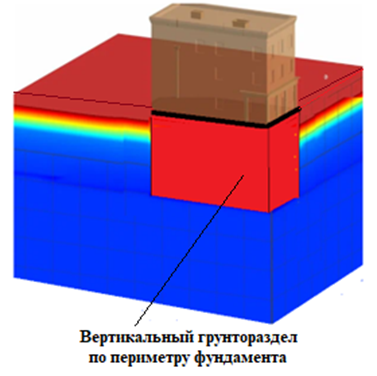 Представленный фрагмент взят из книги В.И. Крутова «Основания и фундаменты на просадочных грунтах» (https://bookree.org/reader?file=636133), изданной в 1982 году. Необходимость применения вертикальных грунторазделов по периметру фундаментов с функцией ликвидации или снижения нагружающих трений на подфундаментные грунты возникла в последней четверти прошедшего века. Прошло много лет, но в арсенале строителей в наличии на сегодняшний день имеются рабочие органы только для устройств противофильтрационных завес, которые можно приспосабливать и для снижений трения между вертикальными поверхностями грунторазделов, но эти применения будут осуществляться без должного эффекта. Сегодня в Минстрое Р.Ф. рассматривается вопрос о применении обособленных грунтовых оснований. Надеюсь на то, что Альтернативные Строительные Правила (АСП) будут введены в действие в 2023 году с основным требованием, которое направлено на применение ленточных и плитных фундаментов, обладающих способностью обнулять текущи