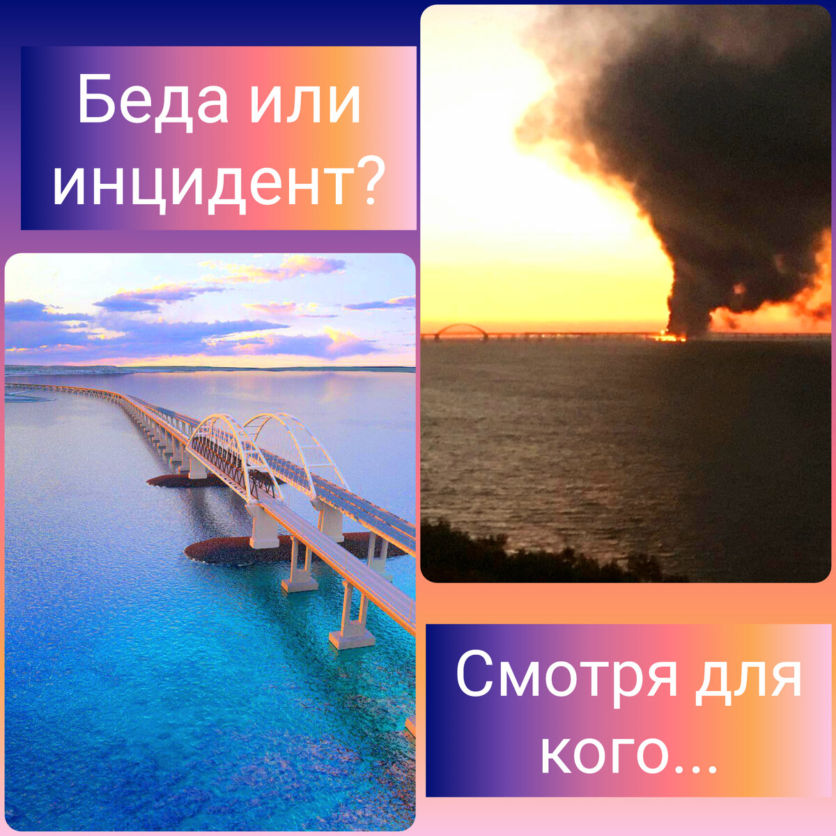 Бессмертная фраза Виктора Степановича приходит на память в такие дни, когда всё задуманное внезапно меняется. Всё, о чём хотел говорить сегодня, ушло на второй план. Одно событие сейчас владеет нашими умами. Картинка уже развернулась и сейчас она будет описана разными словами и с разных сторон. Подробности будут уточняться. Они очень важны, но основное событие уже состоялось. Пересказывать что либо бессмысленно, многие уже всё знают. Попробую сформулировать своё понимание и "непонимание" момента. Угрозы разрушения моста звучали много раз. Все меры защиты стратегического объекта были приняты. Мощная группировка ПВО практически исключала возможность поражения ракетами. Постоянно проводились контр-террористические мероприятия. На въездах на мост работают пункты тотального досмотра, где есть даже сканеры для фур. Они могут определить структуру груза и его состав. В частности есть датчики, выявляющие наркотики и взрывчатку. По вечерам на этих пунктах скапливаются километровые очереди - идёт