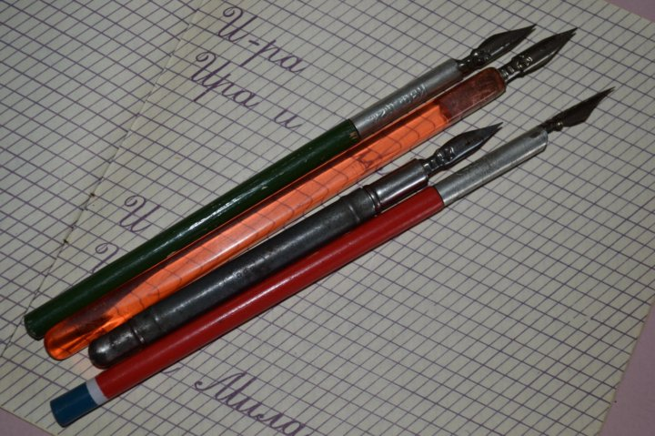 Я начала учиться в 1959 году, сперва писали простыми карандашами, потом постепенно переходили на письмо перьевой ручкой. Как легко можно было ею поставить кляксу, если наберёшь на перо много чернил!
