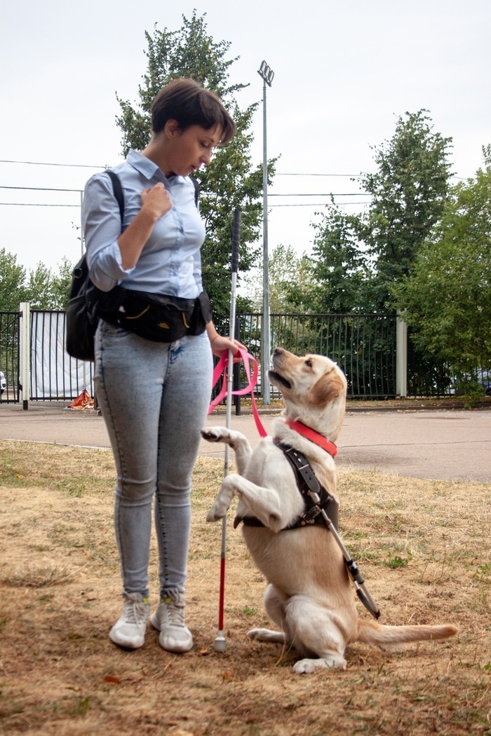 Привет! Меня зовут Юля, у меня остаточное зрение и собака-поводырь. Поэтому я почти никогда не остаюсь незамеченной в толпе. Народ у нас добрый, часто делает моей собаке комплименты, хвалит её и... тянет руки, чтобы погладить. И это прямо во время её работы, то есть тогда, когда она ведёт меня по оживлённой улице, вдоль дороги, на спуске с лестницы или на платформе в метро. Дорогие мои, отзывчивые сограждане! У меня к вам большая просьба! НИКОГДА НЕ ОТВЛЕКАЙТЕ РАБОТАЮЩУЮ СОБАКУ-ПОВОДЫРЯ! НЕ гладьте, НЕ подзывайте, НЕ пытайтесь накормить собаку-поводыря. Запомните, в её лапах - безопасность незрячего человека. Понять, что собака работает можно по специальной шлейке с жёсткой ручкой и надписью "собака-поводырь". Всем добра!