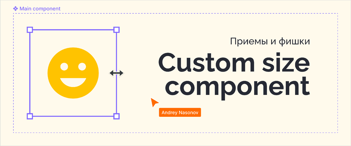 Что такое "Custom size component" или как изменить размер элемента в инстансе компонента? Всем привет, меня зовут Андрей Насонов я работаю UI/UX дизайнером, это моя серия статей про фишки, трюки и прочие штуки в Figma 🙂 Что такое "Custom size component"? Это компонент в котором размер изменяется за счёт отступов "spacing" между двумя элементами с шириной или высотой 0px. Про элементы с нулевыми размерами я писал ранее в статье "Компонент в Figma с нулевыми размерами" Зачем это нужно? На данный момент в фигме всё ещё нельзя задавать размер фреймов внутри инстансов. Это доставляет некоторые неудобства, и из-за этого приходится либо создавать много одинаковых компонентов разного размера, либо делать детач инстанса и изменять размер элемента вручную. Чтобы избежать и того и другого я придумал приём который всё-таки позволяет это делать. Задавать размер фреймов внутри инстансов можно благодаря "Custom size component". Важно! Речь идет именно о том, чтобы задавать элементу конкретный размер