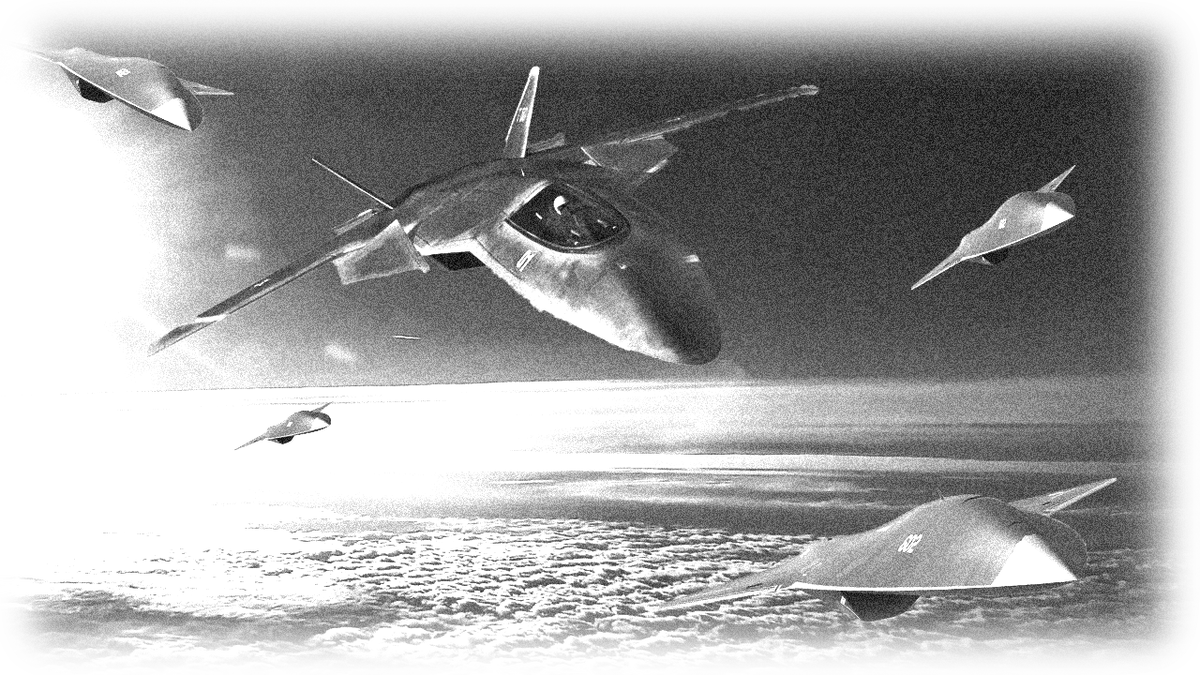 Более того, через сенсоры в шлеме ИИ будет на физическом уровне интегрирован в пилота и, оценивая состояние пилота, ИИ будет принимать решения о возможностях пилота и его стимуляции. Вокруг боевого самолета будут работать, сопровождающие его беспилотные дроны, лишь отчасти управляемые пилотом, а в большей мере входящие в единую боевую систему с ИИ и управляемые ИИ. Дроны смогут и будут выполнять независимые от пилота боевые задачи и задачи сопровождения.