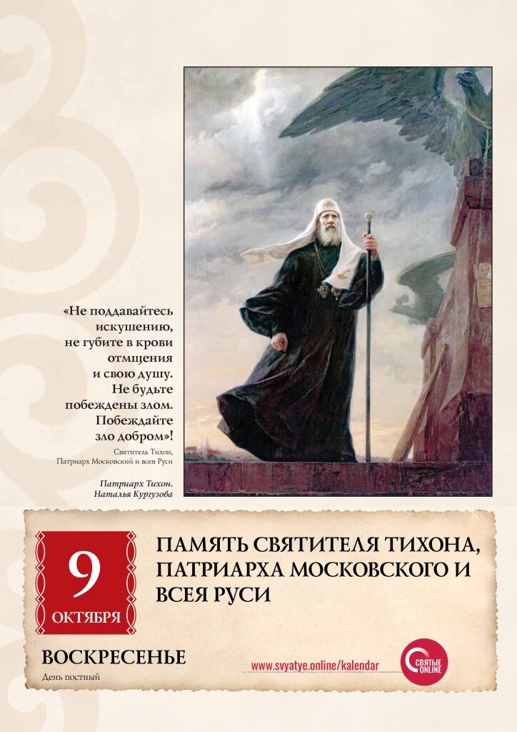 9 октября - память святителя Тихона, патриарха Московского и всея Руси