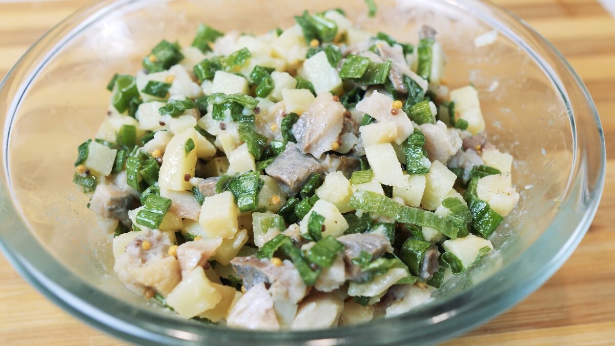 Картофельный салат с селёдкой "по-деревенски". Вкусно, сытно, просто, дешево и без майонеза!