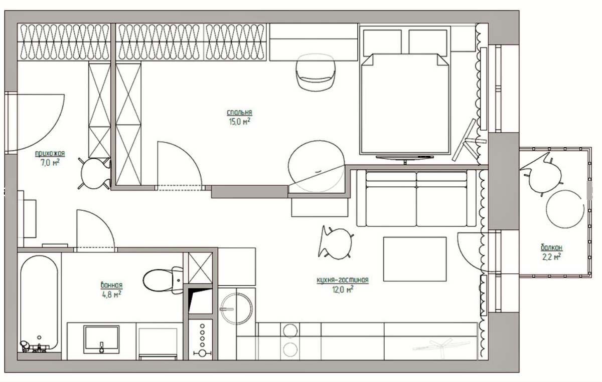 Наша героиня купила эту квартиру пару лет назад. И вот настал момент, когда она решила сделать ремонт. Но так как денег на дизайнера у неё не было, она решила все придумать и реализовать собственными силами. Проект С самого начала эта квартира была типичной "однушкой" с маленькой кухней и большим коридором. Эта планировка не устраивала хозяйку, поэтому она решила сделать перепланировку. Она сместила стены и на этой площади разместились: кухня-гостиная, большая спальня и объединенный санузел. Прихожая Весь интерьер квартиры хозяйка сделала в темных цветах. Основной цвет - графитовый. Слева от входа начинается большая система хранения, которая имеет продолжение на другой стене. Фасады выкрасили в черный цвет. А вот входную дверь решили сделать в ярко-красном оттенке. Кухня-гостиная Кухня так же выполнена в темных оттенках. Справа от входа расположился кухонный гарнитур буквой Г. От верхнего яруса было решено отказаться в пользу открытых полок. Фартук выложен темной плиткой. Нижний ярус