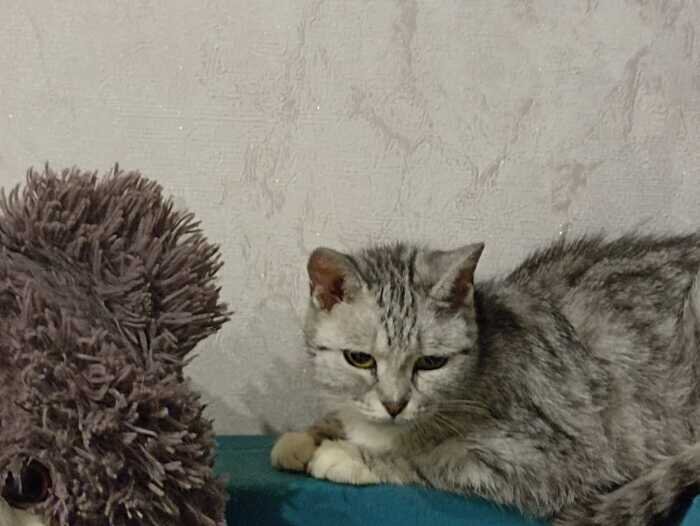 Кошке около 8-9 лет, очень спокойная, общительная, но не навязчивая. Поскольку уже взрослая, то не позволяет себе драть обои, мебель и прочие вещи, иногда любит побегать поиграть, но в основном спокойное времяпровождения, ночью спит:) Прекрасно уживается с собаками, а вот другие кошки ее не приняли. Кошка домашняя. Была найдена в середине июля, в районе стройки нового моста. Была в ужасном состоянии, пришлось удалить все зубы, теперь основой рацион мокрый корм, либо мелкий сухой корм (для котят). Присмотритесь пожалуйста к ней, очень хочется найти ей дом. P.S. Без рейтинга