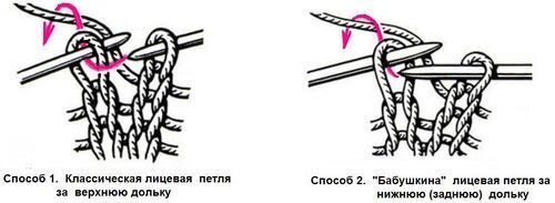 В молодости я не вязала для себя юбки на резинке. Мне это казалось не элегантным. Да и талию не хотелось увеличивать за счет сборок от резинки. Я вязала полый пояс и вставляла туда репсовую ленту, чтобы пояс не растягивался. А потом вывязывала застежку по образу и подобию шитых юбок. Однажды я настолько увлеклась придумыванием этой застежки, что прошла пешком дорогу от института до дому, которая на автобусе занимала 50 минут. )) Зато придумала ))) Так вот, придумала - связала. И на готовой юбке обнаружила, что видна граница перехода вязания с прямых спиц на круговые. Я была обескуражена. Юбку перевязывать не стала, а связала к ней жакетик. Кстати, в этом костюмчике я познакомилась с моим мужем. Костюм ему очень понравился ))), он его много лет вспоминал )). А тогда мне не давала покоя мысль об этой видимой границе. Я девушка упертая, таки выяснила, что граница возникла потому, что я в одном случае петлю перекручиваю, а в другом - нет. Это сейчас возникли термины "бабушкина петля"