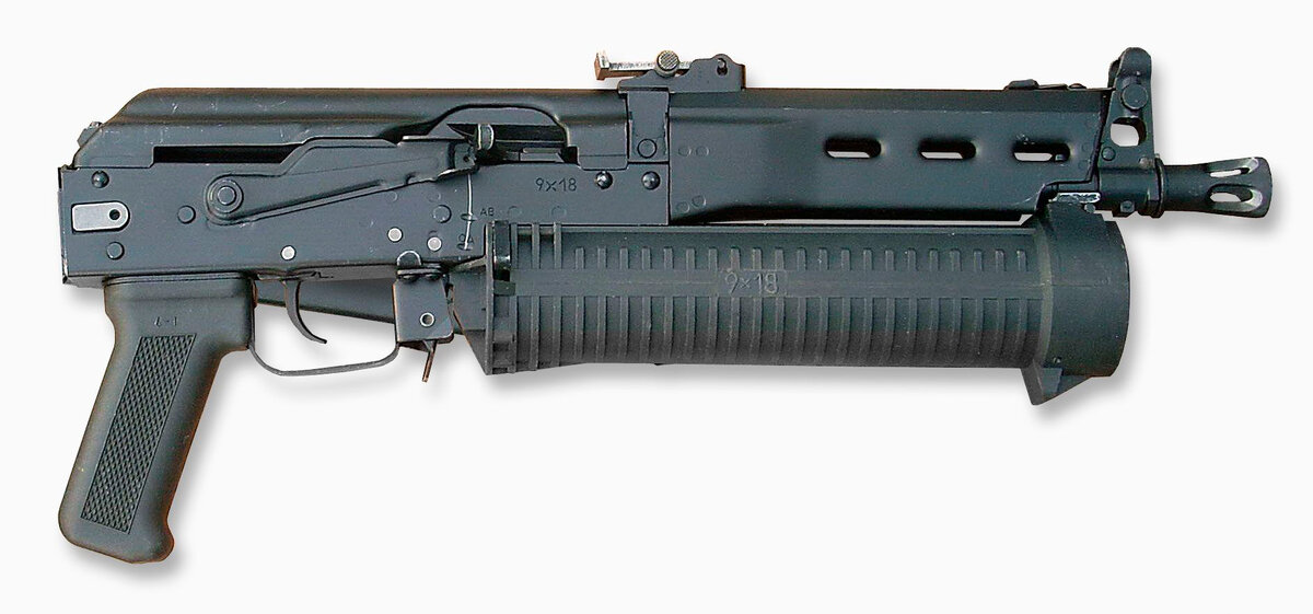 Главным и наиболее оригинальным изломом нового пистолета-пулемета, выгодно отличающим его от целого ряда собратьев, безусловно, является шнековый механизм, вмещающий 64 патрона. Эта емкость выбрана, исходя из того, что количество заряжаемых патронов кратно числу 16 - содержимому 1 картонной пачки, в которые их расфасовывают на заводах. Таким образом, конструкция магазина имеет резерв и при внесении в нее изменений емкость может быть, увеличена. Магазин не выступает за размеры оружия и обеспечивает ему прекрасные габаритные характеристики. При стрельбе его можно использовать в качестве цевья, что повышает удобство удержания, делает "Бизон" прикладистым и достаточно маневренным оружием ближнего боя. В серийном производстве корпус магазина изготавливается из высокопрочной пластмассы. Пистолет - пулемет сконструирован под пистолетный патрон 9х18 мм ПМ. Причем может использоваться как обычный, так и модернизированный вариант патрона. Последний обеспечивает большее давление и, соответственн