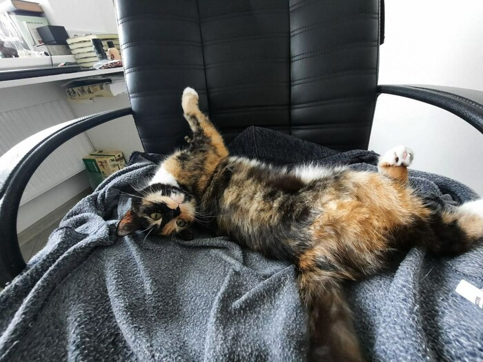 Привет от Киры, которая родилась осенью на пустынных дача. Вот уже год она домашняя кошка
