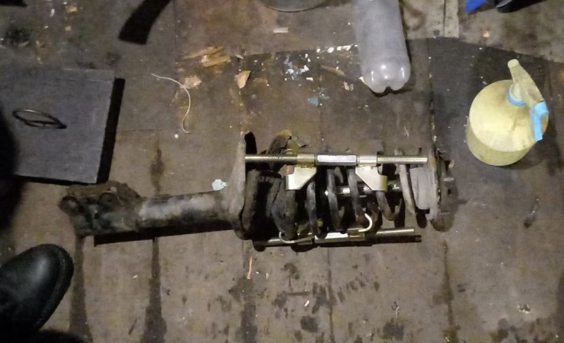Доброго времени суток, поговорим о личном опыте по замене стоек амортизатора. Дело было вечером, делать нечего и дошли руки подшаманить машину, потому как после любого "лежачего полицейского" позвоночник имел свойство проваливаться в трусы. Откинув сидения и открутив верхнее крепление стойки, а следом и нижнее, с помощью чьей-то матери и молотка она вышла на свет, представ во всей красе. Как не странно, но оказывается что на штоках иногда нужны разные ключи. Т.е. ключ, который подходит на новый шток, на старый не подходит. А старую стойку мне жизненно необходимо было разобрать, по причине того что нужна была верхняя опора, т.к. в магазинах в наличии не было, а эта вполне в неплохом состоянии. Но, вечер субботы, закрытые магазины, а с утра уже выезжать в другой город - дало повод прибегнуть к некоторым манипуляциям с болгаркой... Убедительная просьба, не пилите пружины, так как (особенно в сжатом состоянии) они имеют свойство лопаться, а в последствии вы можете пораниться. В том чи