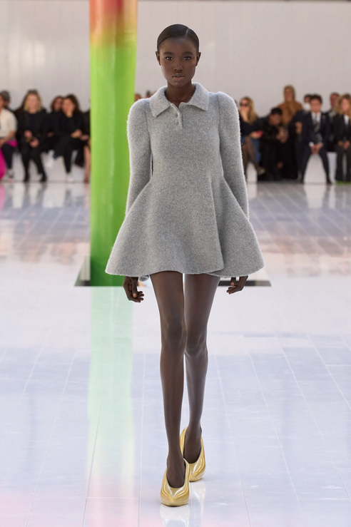 Для вдохновения Коллекцию, которую я рассматриваю можно четко разделить на 2 раздела. Мини-платья По большому счету это одно платье в разных цветах. Настолько мини, что кроме подиума данная длина нигде не приживется. Хотя.... кто знает Что мне нравится — воротник-поло и фактура. Что я пока не поняла, так это крой рукава. Стройные, изящные и длинноногие нимфы с таким рукавом смотрятся странновато: плечи становятся круглые, широкие, тело колбасно-прямое. Но это мое личное мнение, ни капли осуждения. Каждый носит, что хочет. Не удивлюсь, если это будет очень трендовая форма плеча. Бронекофты Изделие, мягко говоря, нетипичное. Выглядит очень неудобно.