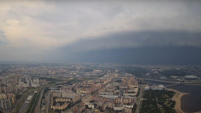 Петербуржцам показали кадры надвигающегося циклона с высоты «Лахта Центра»