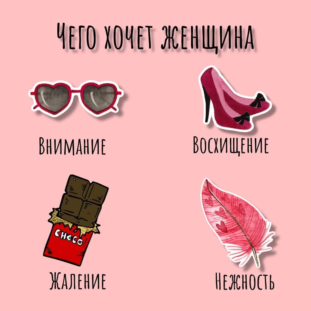Что хочет женщина получать от своего избранника? Какое она ждет отношение к себе, чтобы понимать, что она любима? Составляющих любви можно перечислять бесконечно, коротко опишу четыре элемента, которые необходимы каждой женщине: 🌸ВНИМАНИЕ. Женщине важно внимание также, как растению вода. Не стоит предлагать ей манную кашу по утрам, если она обожает встречать новый день чашечкой крепкого кофе. Помнить о дне рождении ее родных, дне вашей встречи. Ухаживать за ней в гостях. Ставить на зарядку ее разряженный телефон. Замечать, что она покрасила волосы, сменила имидж, посвежела. Интересоваться ее настроением, самочувствием. Видеть, слышать и чувствовать ее. И даже с удовольствием походить с ней по магазинам. Если женщине не достает вашего внимания, и она напрямую не говорит вам об этом – "обделенная" женщина непременно отплатит за этот промах неуважением к мужчине. 🌸ВОСХИЩЕНИЕ. Вы точно знаете какое восхищение ждет женщина! Безусловно, своей внешностью, красотой. И даже, если женщина счит