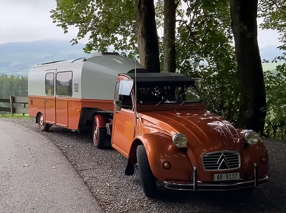 Более 30 лет назад некто Бернд Гельдмахер из Швейцарии - большой любитель "де шво", набросал в тетрадке эскизы седельного тягача на базе Citroen 2CV с полуприцепом. Само же воплощение идеи в металле началось в 1996 году.