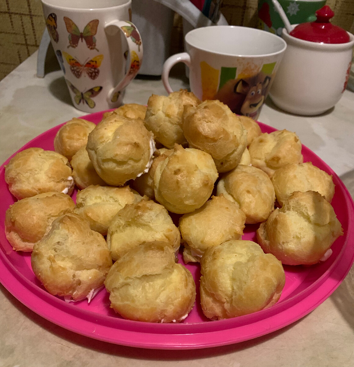 Нежнейшее пирожное! Готовится очень легко и быстро. Обязательно приготовьте и порадуйте себя и своих близких! Ингредиенты : Тесто: ✔️Вода - 120 мл. ✔️Сливочное масло - 60 г. ✔️Сахар - 1 ч.л. ✔️Соль - 1/4 ч.л. ✔️Мука - 90 г. ✔️2 средних яйца Крем: ✔️Белки - 4 шт ✔️Сахар - 200г ✔️Лимонная кислота - на кончике ножа ✔️Ванилин - щепотка Приготовление Сначала готовлю ТЕСТО . Выпекаю в духовке 20 минут при температуре 190 градусов, а затем 15 минут при 170 градусах. Во время выпечки духовку открывать нельзя, иначе профитроли опадут. Время выпечки зависит от особенностей духовки . После приготовления не стоит торопиться вынимать профитроли из тепла. Нужно избегать резких температурных скачков. Выключаю духовку и оставляю профитроли с приоткрытой дверцей минимум на 15 минут. Пока профитрольки остывают , готовлю крем . Крем может быть абсолютно любым, какой Вам нравится . В моём случае готовлю заварной белковый КРЕМ: Крем готов ! Начинаю наполнять профитроли кремом : надрез