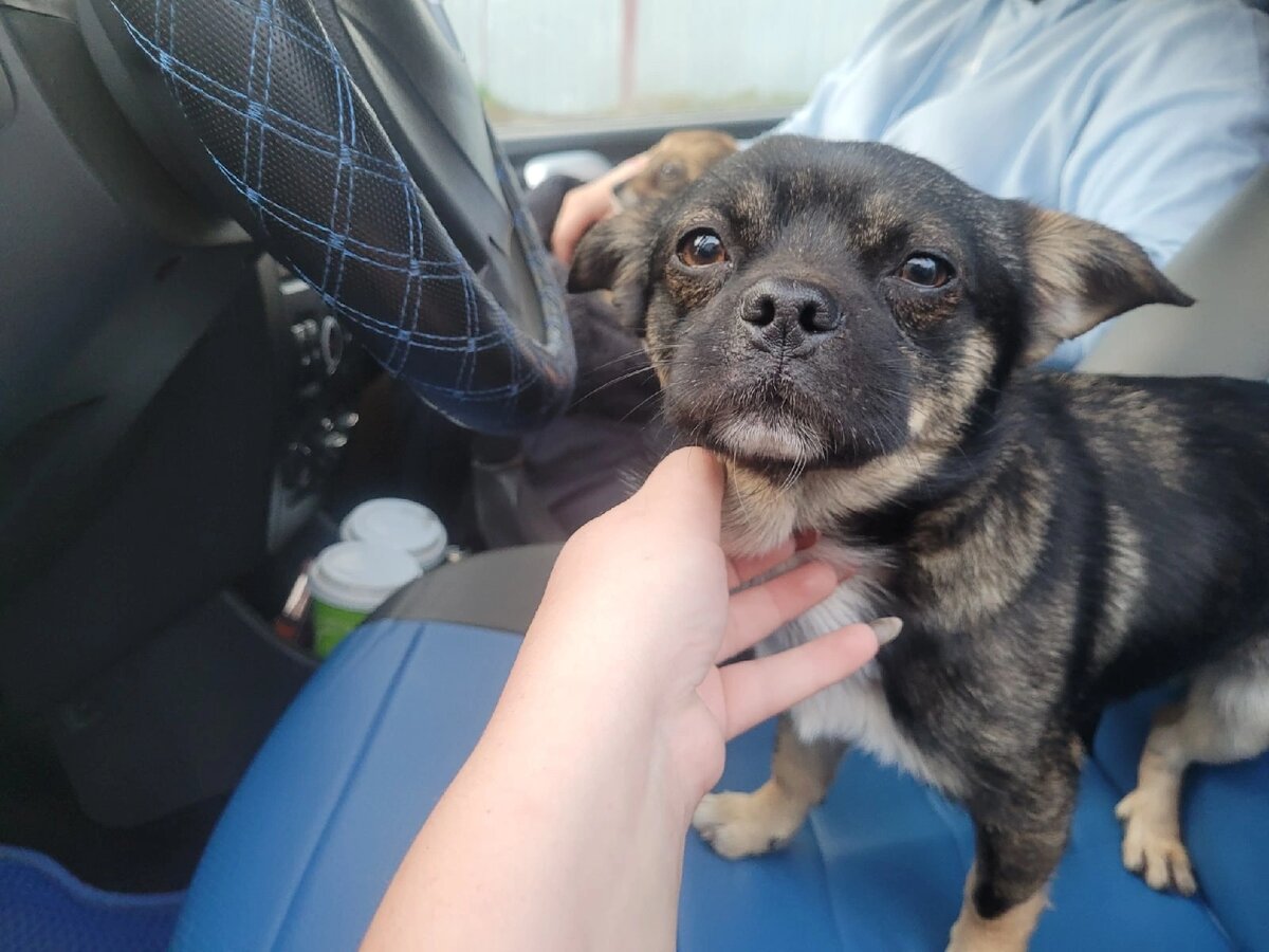 Но не успели они вылезти, как маленькая находка сам никого не стесняясь запрыгнул в машину...