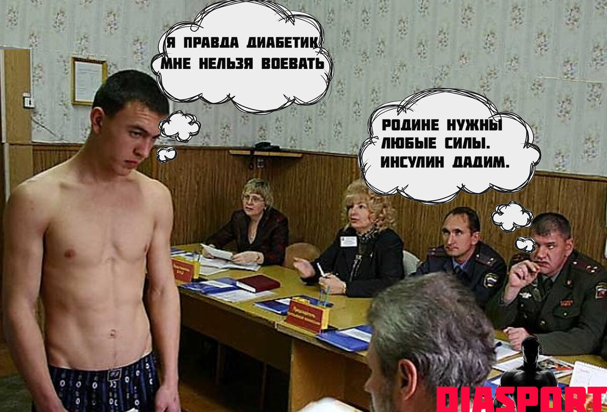 Недавно нашумевшее сообщение о мобилизации напрягло не только здоровых обычных смертных. Я как человек, обладающий диабетом 1-ого типа был на 100% уверен, что армия для меня закрыта навсегда, но как оказалось счастье продлилось недолго. В статье 13 документа «Другие болезни эндокринной системы, расстройства питания и нарушения обмена веществ» написано, что если у вас диабет проходит без серьезных осложнений, а конкретно: пролиферативная ретинопатия, резко выраженная ангиопатия и невропатия нижних конечностей, проявляющиеся трофическими язвами, гангреной стоп, невропатическими отеками, остеоартропатиями, диабетическая нефропатия с макропротеинурией с нарушением азотвыделительной функции почек, при рецидивирующих кетоацидотических прекомах и комах. То вы принадлежите призыву. Да это так, если вы правильный диабетик с хорошими сахарами и у вас, к счастью, нет осложнений, то наше государство нуждается даже в вашей помощи.