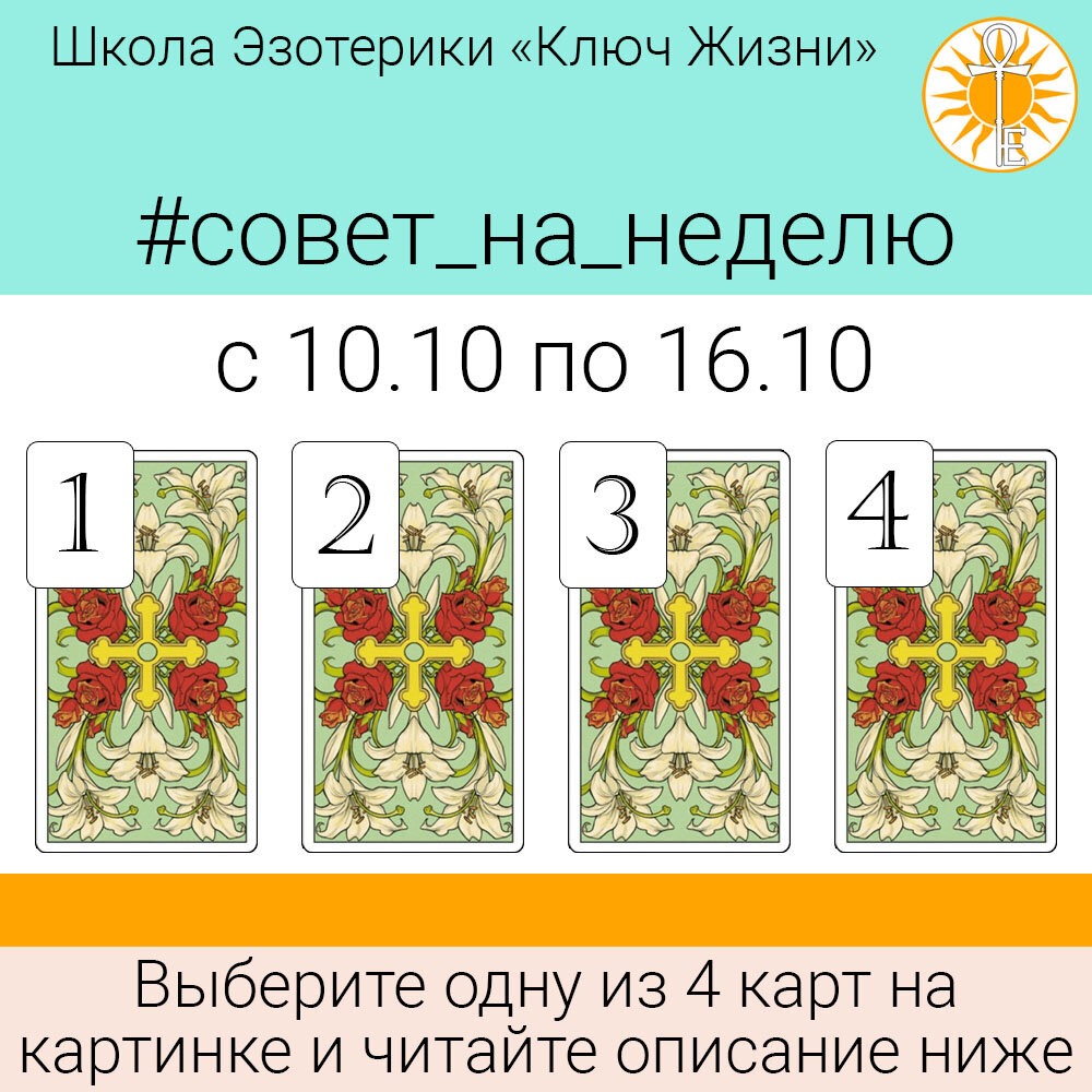 Выберите одну из 4 карт на картинке и читайте описание ниже: 🔻 🔻 🔻 🔻 🔻 🔻 🔻 🔻 1️⃣ 9 пентаклей – Проявите максимальную практичность и постарайтесь извлечь выгоду из всего происходящего вокруг вас. О высоких материях будете думать потом. Сейчас ваша задача обеспечить себе материальный комфорт. Расставьте приоритеты и пока отбросьте в сторону дела, которые не приносят вам никакой пользы. А также сократите общение с людьми, которые лишь отнимают время и ничего не дают взамен. Проследите за здоровьем, возможны скрытые проблемы. 2️⃣ 5 кубков – Даже, если сейчас вам кажется, что мир рухнул или всё летит в тартарары, не отчаивайтесь. Разрушение — это неотъемлемый элемент создания нового. Чтобы что-то создать. Нужно что-то разрушить. Если место занято – не придёт ничего нового. Пришла пора освободить место для нового в вашей жизни. Сосредоточьтесь на том, что у вас есть. На своих ресурсах. Можно немного погоревать, но без фанатизма. И двигайтесь дальше - впереди много хорошего. Будьт