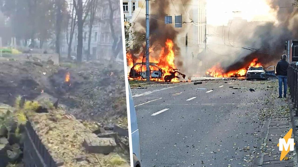 Видео и фото с последствиями взрывов в Киеве вирусятся в Сети. На кадрах с места событий попали дым, огонь, повреждённые автомобили и земляная воронка в парке Тараса Шевченко. Жители столицы в ролике укрываются в метро.