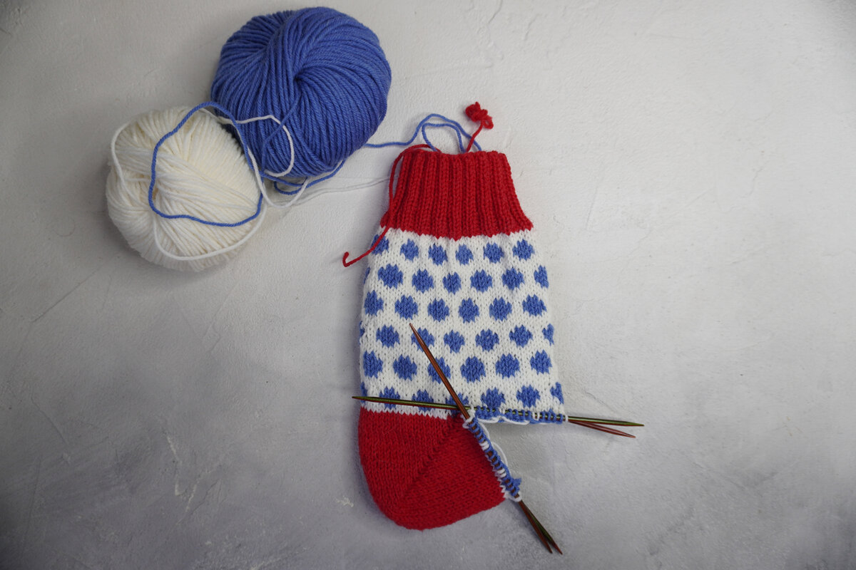 Переходим к вязанию пятки. Это не самый простой шаг, особенно в объяснении того, как вязать пятку в формате статьи, поэтому я сначала небольшие отрезки видео + в моем МК по носкам есть подробное объяснение того, как вязать пятку бумеранг (начинается с 8 мин. 58 сек.). С чего начать. Во-первых, почему пятка бумеранг? Потому что после нет необходимости делать прибавки и убавки, тем самым подстраивая под рисунок, он достаточно объемная, что в совокупности хорошо смотрится по пропорциям. Во-вторых, пятка вяжется из половины петель носка (об этом я говорю в обоих видео). В-третих, это не сложно, главное начать. Сначала вяжем одну часть пятки, смотрим видео по совместному и потом приступаем ко 2 части. Все ниточки, дырочки и т.д. уберем в конце главное в начале придерживать кончики, чтобы петли не убегали. Я постаралась максимально сделать так, чтобы узор не поплыл, но это моя версия, вы же можете видоизменить и связать привычным для вас способом :) Также у меня есть МК на другую треуголь