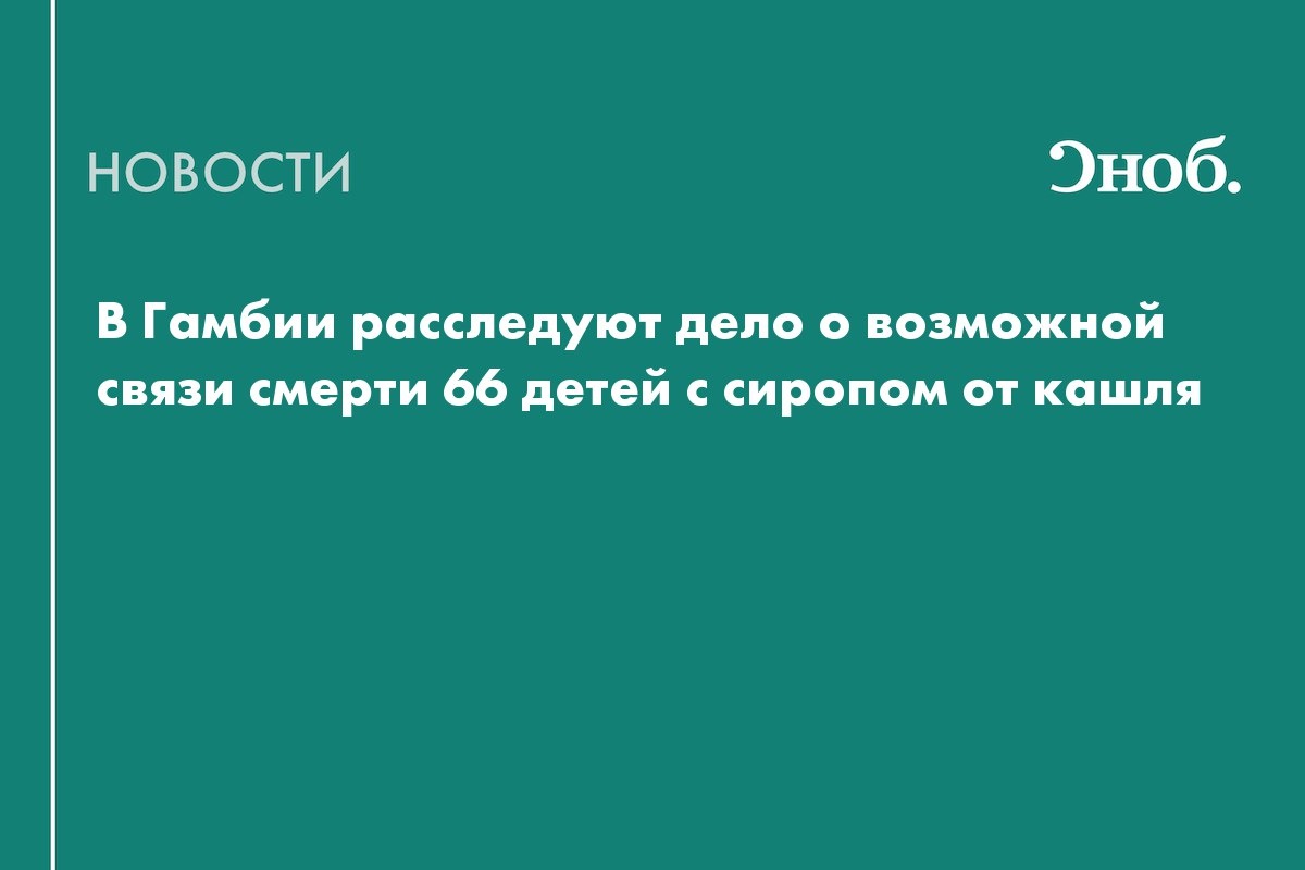 Полиция Гамбии занялась расследованием смерти 66 детей. Правоохранители считают, что к летальным исходам могло привести употребление сиропа от кашля, передает BBC. Полиция уже допрашивает чиновников Агентства по контролю за лекарствами и импортеров Гамбии. По поручению президента страны Адамы Барроу будет приостановлено действие лицензии компании-импортера, которая привозила сироп. Его партии, поступившие в аптеки, магазины и рынки, изымают работники министерства здравоохранения. В общей сложности им удалось собрать 16 тысяч единиц этого средства.