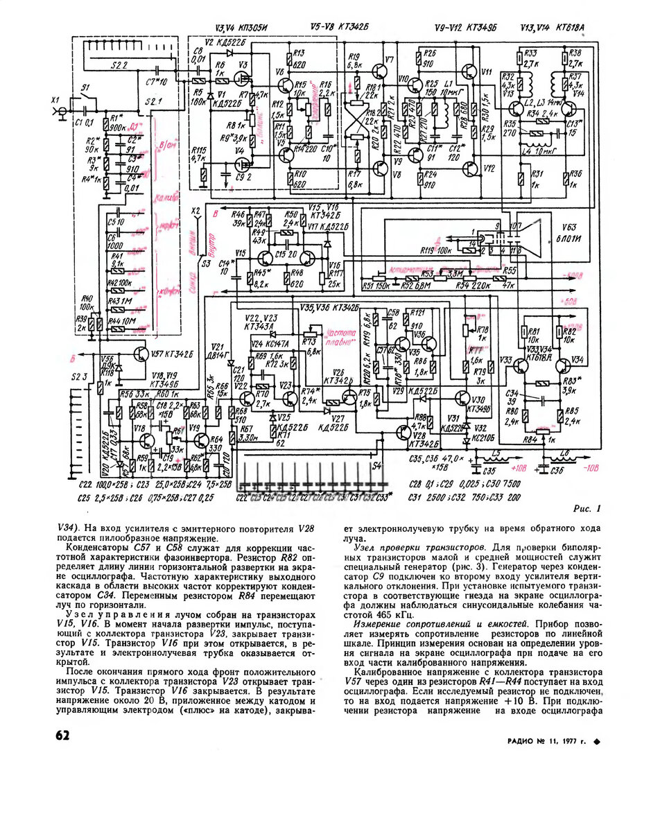 Как и говорилось ранее, за основу нового проекта была взята схема осциллографа опубликованная 45 лет назад в журнале Радио. В статье описывается осциллограф с функциями измерения сопротивления и проверки биполярных транзисторов, эти фичи меня пока не интересуют и они отодвинуты на задний план.