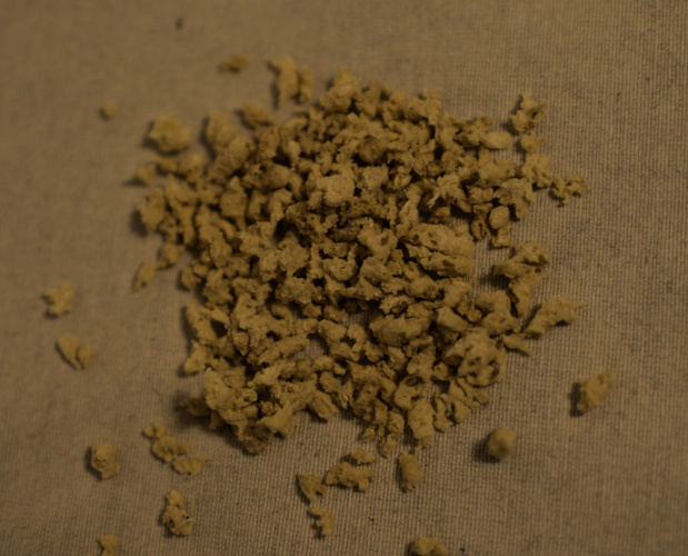 Вот такую структуированную сою я сегодня купила. Называется соевый фарш. Если попробовать эти крупинки в сухом виде, то чем-то напоминает панировочные сухари. Но я эти «штучки» замочила по инструкции и обжарила с грибами и луком на смеси оливкового масла и масла гхи. Получилось очень вкусно. Не было привкуса соевой муки. В основном именно из-за привкуса сои, я не использую соевую муку в выпечке. Хотя соевая мука хорошо подходит для безглютена. Ну, в общем, вот что у меня получилось в итоге: Рис, соевый фарш с грибами и луком. )
