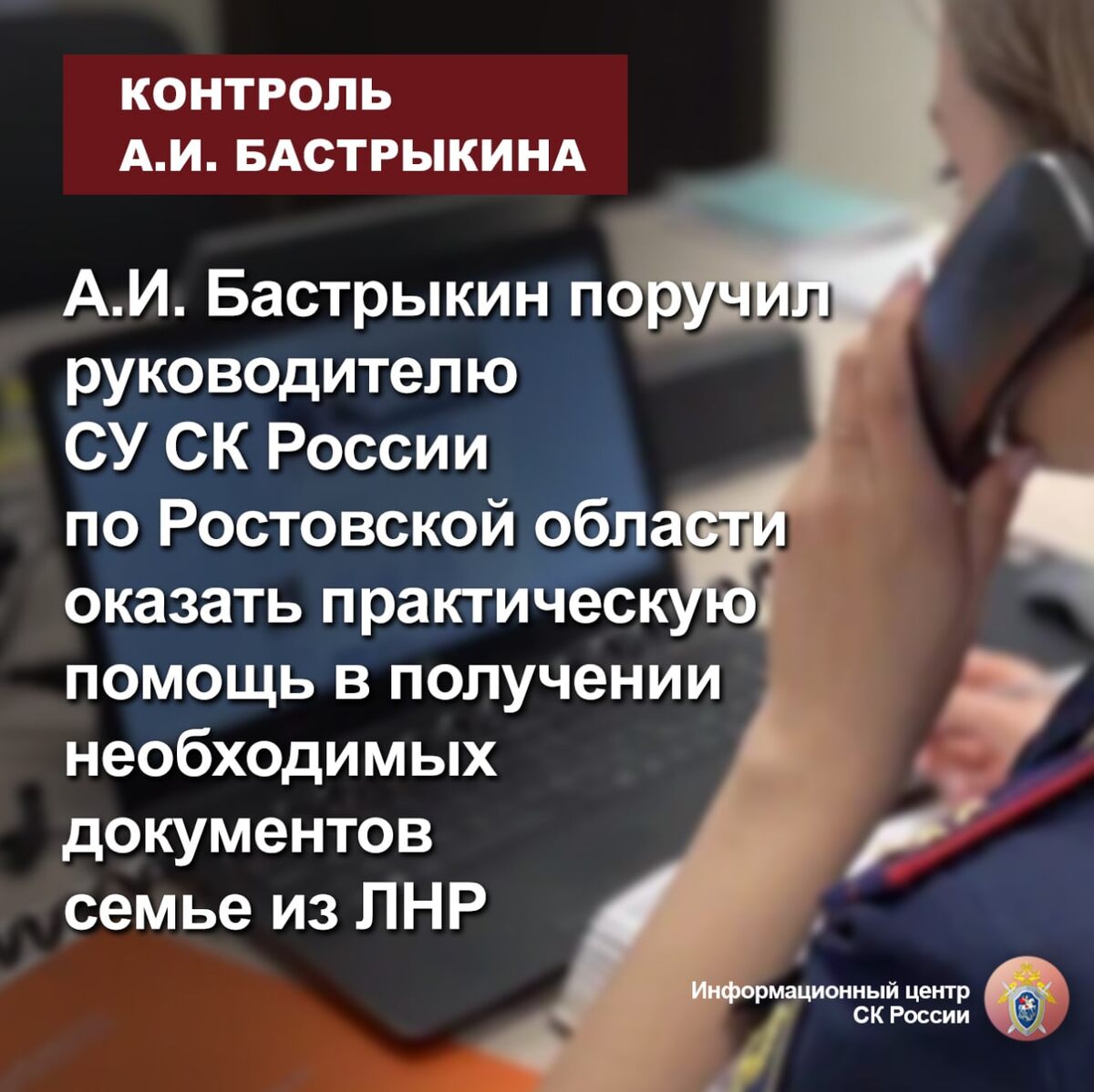 А.И. Бастрыкин поручил руководителю СУ по Ростовской области оказать практическую помощь в получении необходимых документов семье из ЛНР