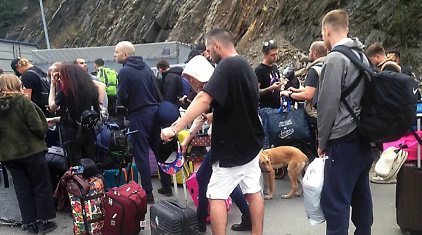 Она была объявлена 21 сентября. Чтобы избежать ее страну уже покинуло более 700 тысяч человек, в основном мужчин молодого и среднего возраста. Часть из них купила стремительно подорожавшие авиабилеты и вылетела в соседние с Россией страны. Другая добиралась до границ своим ходом, потратив массу времени в очередях на пограничных КПП. Больше всего очередей образовалась на КПП «Верхний Ларс» между Россией и Грузией. Там некоторые ожидали прохода по четыре-пять дней. Кроме Грузии, россияне выбирали для экстренного отъезда Казахстан, Киргизию, Узбекистан, Армению, Таджикистан, Азербайджан, Белоруссию, ОАЭ, Израиль и Турцию. В основном используя для этого авиаперелеты. За две недели после объявления о частичной мобилизации число купленных авиабилетов за границу, по сравнению с предыдущими двумя неделями, возросло в два раза. Что касается Турции, то объявление о мобилизации привело к ажиотажному спросу на заграничные туры в эту страну. Они стали рассматриваться в качестве одного из возможных