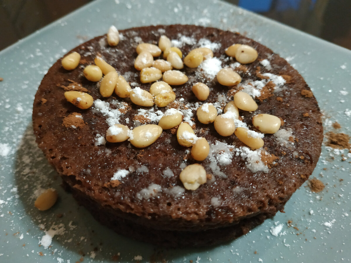 Ингредиенты: Банан - 1 шт; Яйцо куриное - 1 шт; Какао-порошок - 2 ст.ложки Сахар тростниковый - 1 ч.ложка; Разрыхлитель - 3 г Приготовление: Банан и яйцо смешать погружным блендером в густую пену. Затем ввести какао, подсластить или тростниковый сахар, разрыхлитель и хорошо перемешать. Перелить в смазанную маслом форму 12*6 см. Отправить в микроволновку на 3,5 - 4 минуты. Брауни будет сильно подниматься (если начнет убегать, значит выключаем микроволновку на 5 секунд). Дать остыть, вынуть из формы. Можно смазать йогуртом, украсить орешками , сахарной пудрой и какао - на ваш вкус ❤️ Приятного аппетита! ❤️