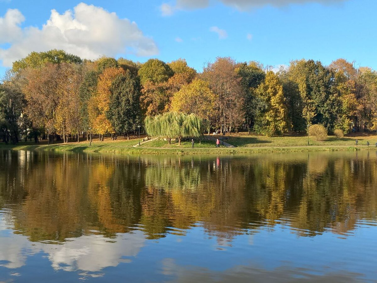Сегодня гулял по парку. Удивительно красив осенний Смоленск, такая палитра встречается - десятки цветов, переливаясь, следуют друг за другом, а потом отражаются в воде на фоне яркого голубого неба.