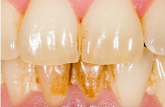 Со временем зубной камень разрастается, уплотняется и темнеет. Он может травмировать десны и в конечном итоге привести к заболеванию десен.