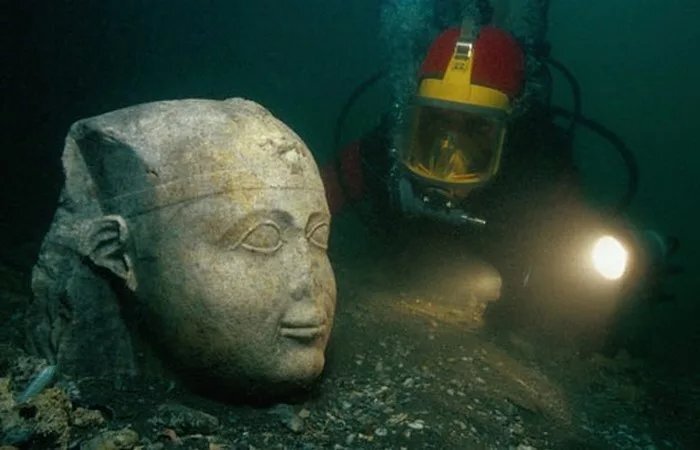 Меня повергла в шок эта информация но: Археолог Фрэнк Годдио много лет искал затерянный город Гераклеон у берегов Египта. Используя продвинутую технологию подводного скрининга, он наконец нашел мечту своей жизни. Древний город был полностью погружен под воду в 6,5 километрах от побережья. Среди руин города нашли также 64 корабля, 700 якорей, золотые монеты и статуи высотой 5 метров.