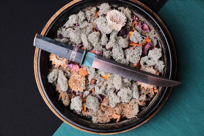 Добрый Всем, кто меня читает! Давненько не делали ничего экстра класса, чтобы порадовать глаз. Наконец, работа над ним закончена и могу похвастаться: Танто пол названием Рю (японское камня ляпис-лазурит, фотография ниже). Отношение к камню он не имеет, только оттенком рукояти. Сам клинок - Niolox, 63HRC, крио обработка. Рукоять: медь, зуб мамонта, стабилизированная карельская берёза. Рукоять разбирается. Нож делался с любовью и вниманием к деталям. Идея была создать из него Реликт. Надеюсь, что понравился. Спасибо за внимание. Всем хорошего вечера и острых ощущений!