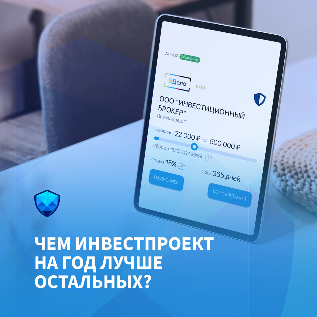 Инвестпроекты на краудплощадке бывают разные — от одного месяца до нескольких лет. А у каждого нашего инвестора есть свои планы на деньги, кому-то они нужны очень скоро — и тогда выбирают максимально короткий проект, если же он копит на серьёзную покупку или образование детей — тогда максимально длинный. Но сегодня мы поговорим о самом оптимальном, на наш взгляд, варианте из всех — на 1 год. Это святой Грааль среди всех проектов «Брокера». И вот почему. Его важное преимущество — это возможность зафиксировать жирную ставку на целый год (а в актуальном проекте «Брокера» она 15%). Что это значит: Ничто и никто не отнимет ваши 15% процентов целый год, что бы ни происходило вокруг! Ставка не привязана к курсу валюты, не привязана к инфляции. То есть вы можете не переживать за свои сбережения, и не мониторить постоянные потрясения на финансовом рынке. Вы всегда точно знаете, какой получите доход через год. Все риски берёт на себя «Брокер», проект мы страхуем своим портфелем. И за всё время