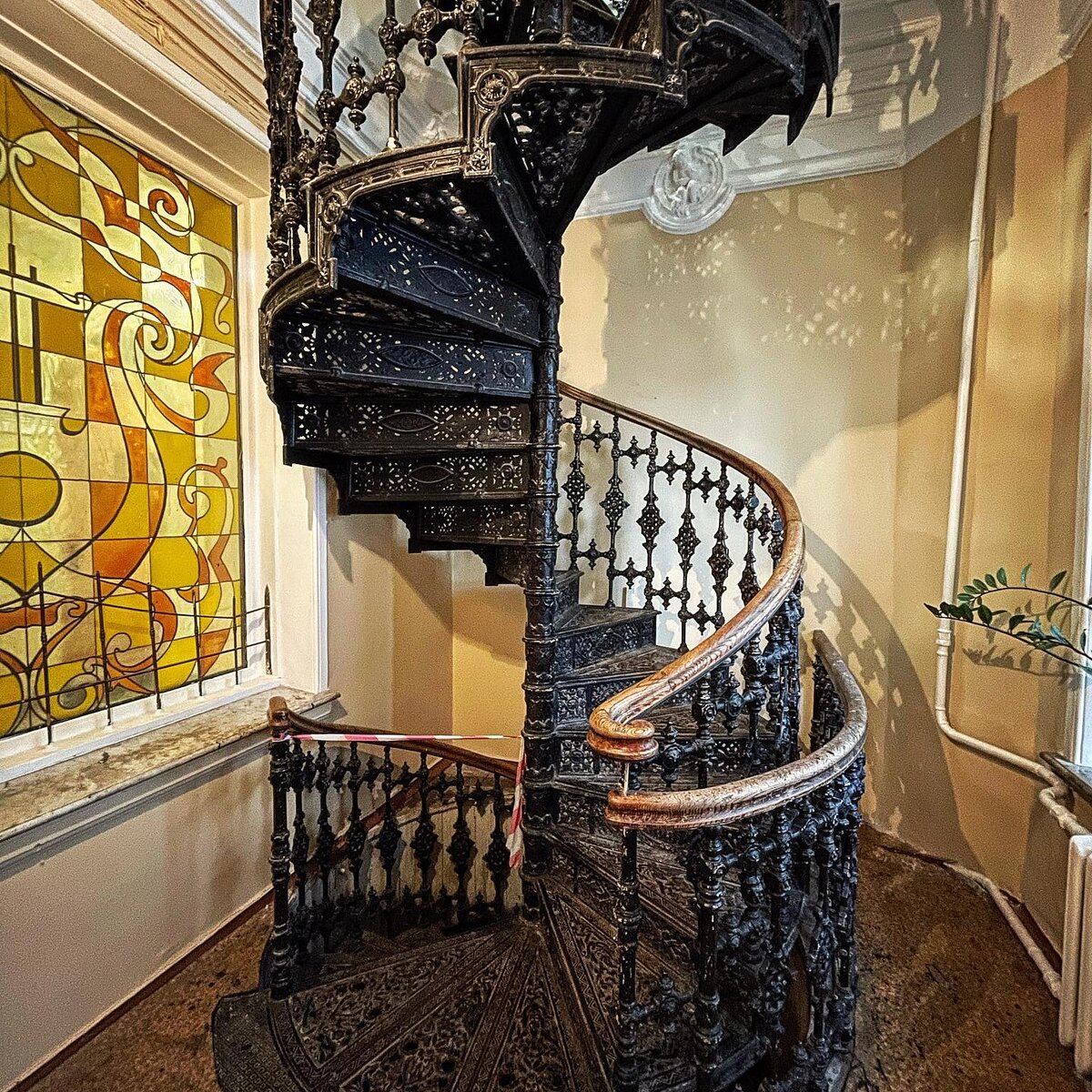 Маленький и скромненький купеческий особняк Грачева-Гардеева в Малом Кисловском переулке таит в себе много интересностей. В нем нужно точно покрутиться по сторонам, чтобы все рассмотреть в деталях. Поднимайтесь по парадной лестнице, но не убегайте наверх. Здесь притаилось витиеватое зеркало с сатирами и нимфами, и окружающий его пышный букет лепнины. На двух этажах можно отыскать яркие оранжевые витражи. По старинному паркету идём дальше по коридору. А там — винтовая чугунная лестница и дубовые двери, сохранившиеся в оригинале. Сейчас усадьбу занимают магазины и конторы, и войти сюда может каждый желающий. Где искать?