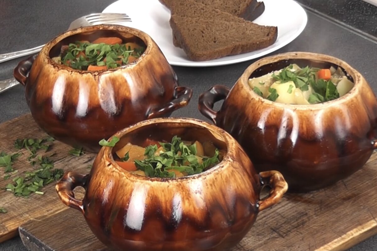 Жаркое из куриной грудки с овощами в порционных горшочках