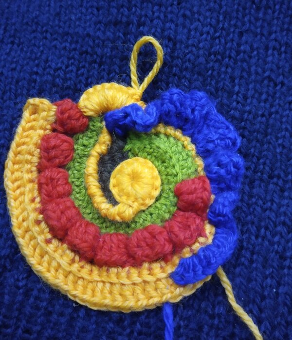 Я провязала один ряд и у меня получилась вот такая шишечка (еще этот элемент называют пуговицей).